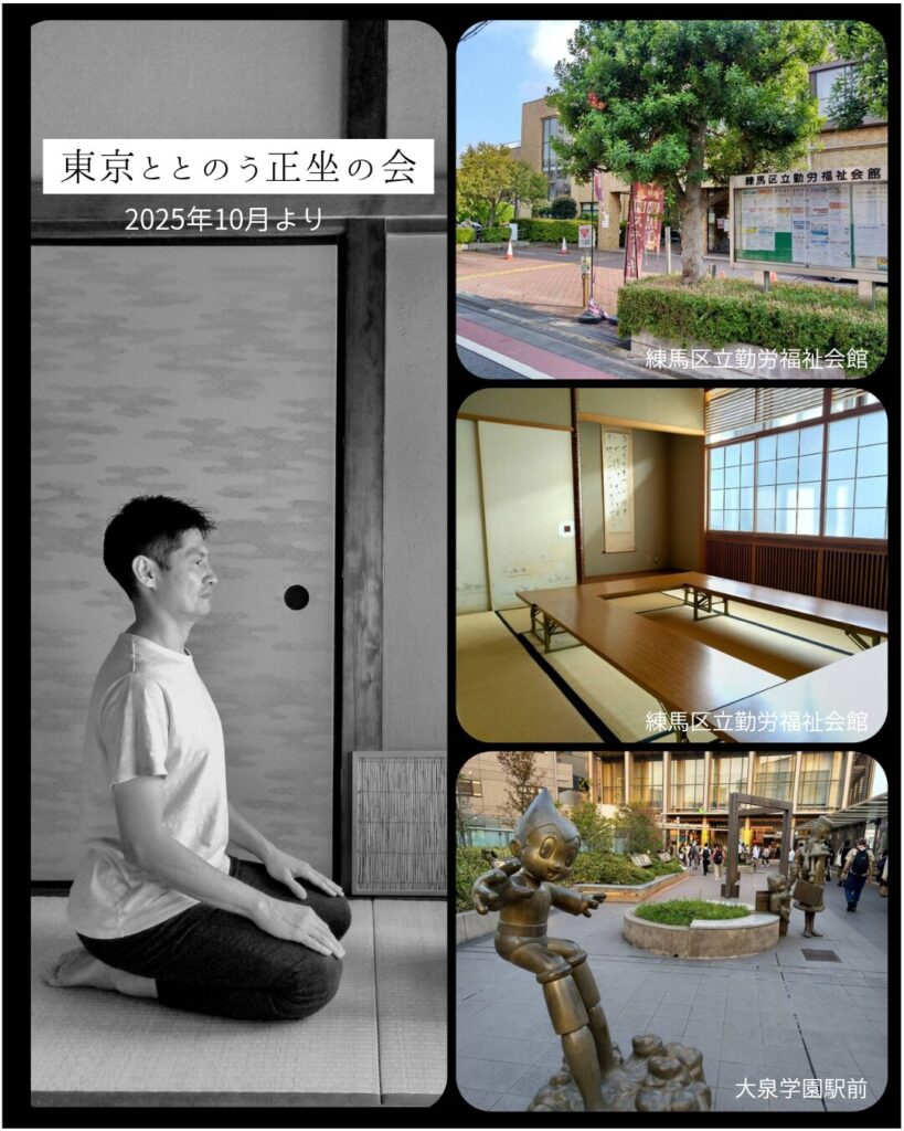 これまで東京では練馬区立 向山庭園で主に個別で正坐会を開いておりましたが、複数人で行いますと深め合える良さもありますので、皆さんが集える正坐会を10月から開くことにいたしました。私が練馬区民ですので練馬区の施設が中心になりますが、10月はアニ... -